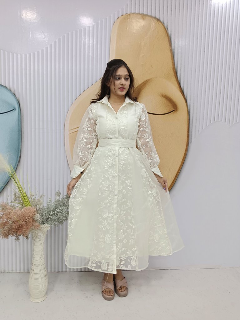 FabricPremium Organza (Soft & Flowing)Inner FabricSoft Cotton LiningColorElegant Off-White / Ivory
