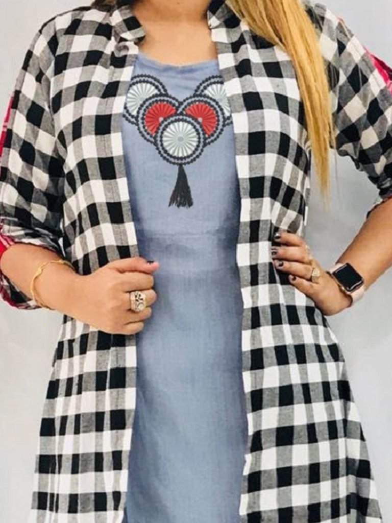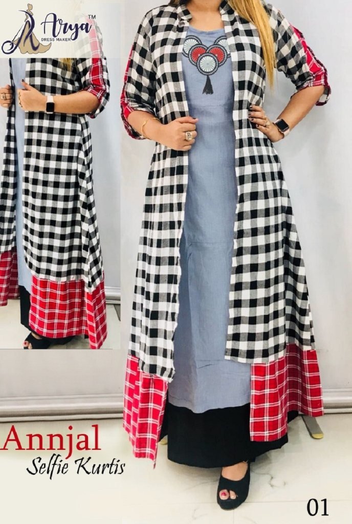 Annjal Grey Black Reyon And Cotton Designer Long Kurti With Koti 1