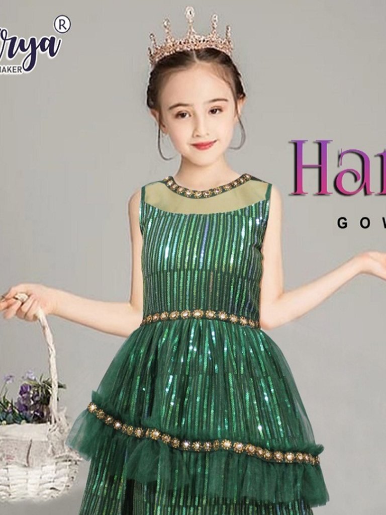 Harry Georgette Sequence Work Full flair Children Gown D2