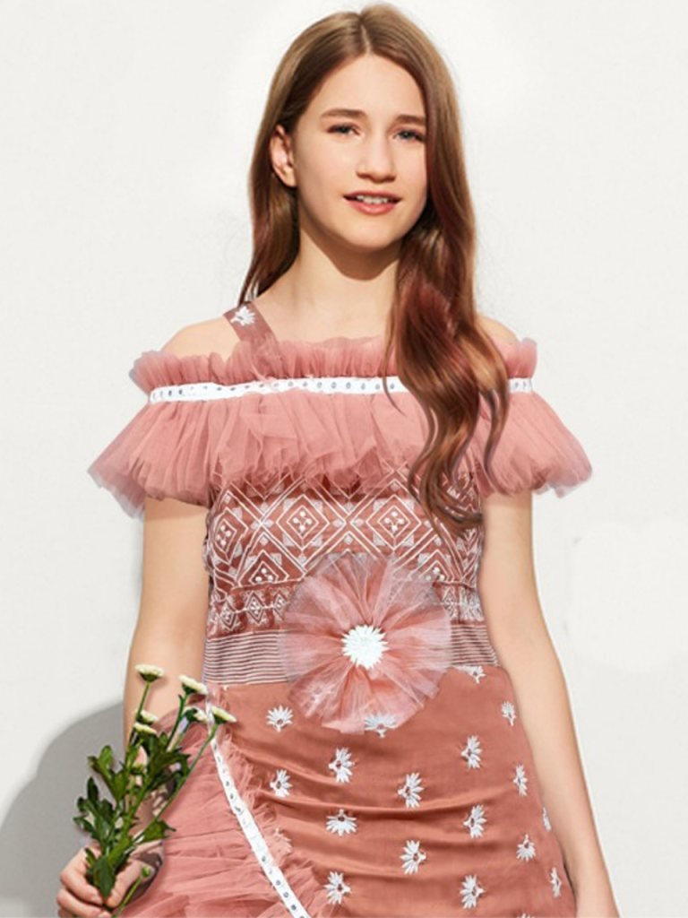 Janvi Soft Net Thread Work Children Gown D4