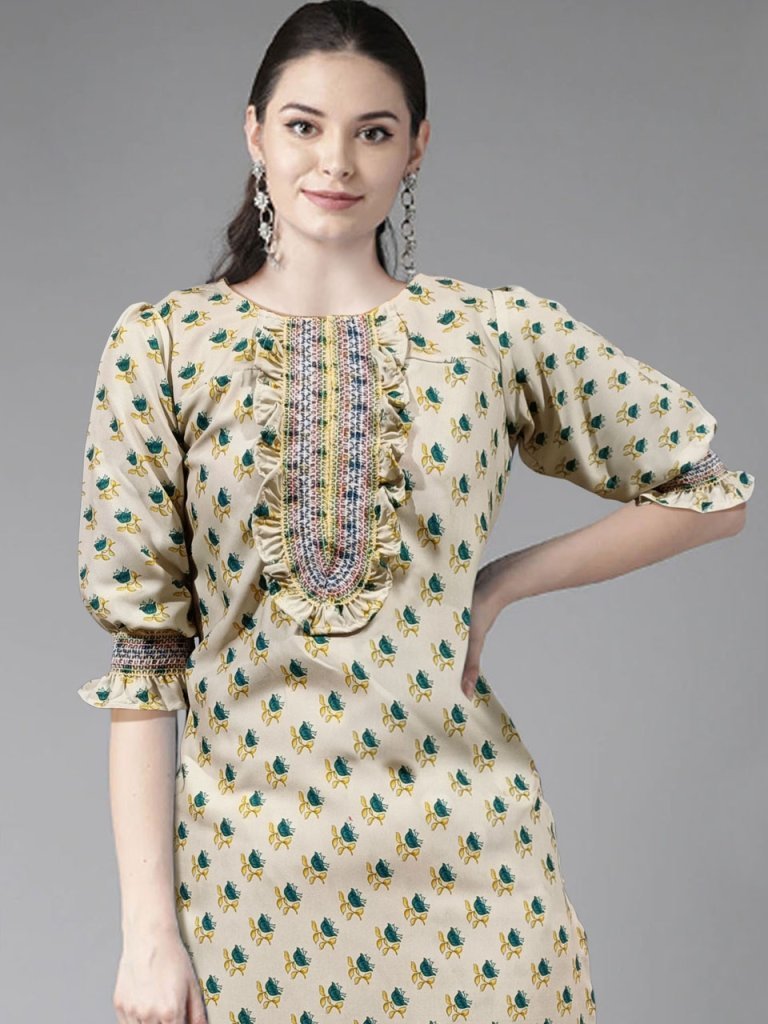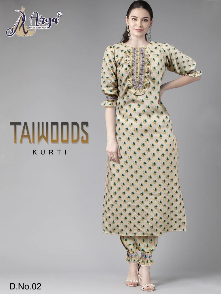 Taiwoods Digital print Smoking work Kurti Pair D2