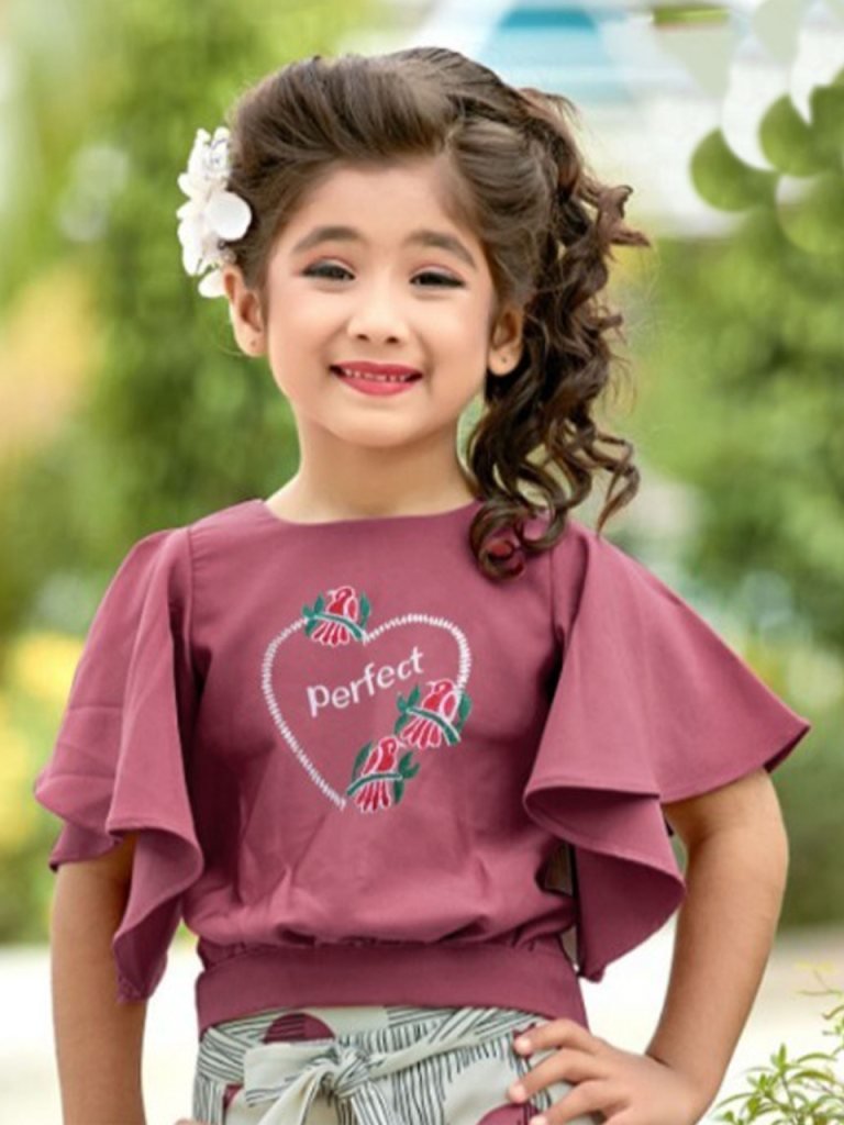 Veera Pink Polireyon Thread Work Top Digital print Plazzo For Kids Wear D1