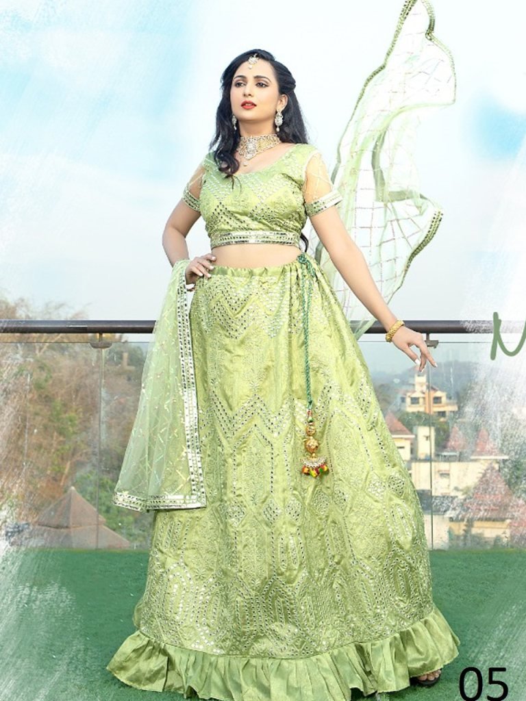 Zmatching Light Green Naps Satin Mirror Work Lehenga With Unstitched Blouse For Women Wear D5